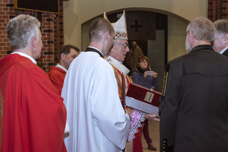 29 Listopada 2019W czwartek, 28 listopada br. w Katowicach odbyły się uroczystości barbórkowe nadzoru górniczego. Rozpoczęła je Msza Święta w Kościele pw. Św. Apostołów Piotra i Pawła w Katowicach. Celebrował ją Arcybiskup Wiktor Skworc, który złożył pracownikom urzędów nadzoru górniczego najlepsze życzenia z okazji obchodów Dnia Górnika. Na zakończenie uroczystości w Kościele Prezes WUG Adam Mirek wręczył księdzu Arcybiskupowi nagrodę honorową, statuetkę Skarbnika - symbolu wszelkiej prawości, strażnika dobrej i bezpiecznej pracy pod ziemią.
