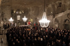 W podziemnej Wieliczce świętowanie rozpoczyna się modlitwą w kaplicy św. Kingi – górnicy dziękują za mijający rok i proszą o boską opiekę na kolejny. Mszy przewodniczył Nuncjusz Papieski w Polsce Jego Ekscelencja Arcybiskup Salvatore Pennacchio. – Jestem do głębi wzruszony mogąc celebrować mszę w tej podziemnej kaplicy jako ambasador kopalni – mówił.